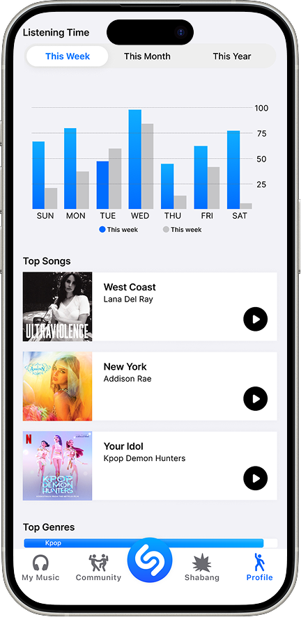 Personal Insights: A dashboard highlights top artists, recent discoveries, and trends. Users revisit regularly for new stats.