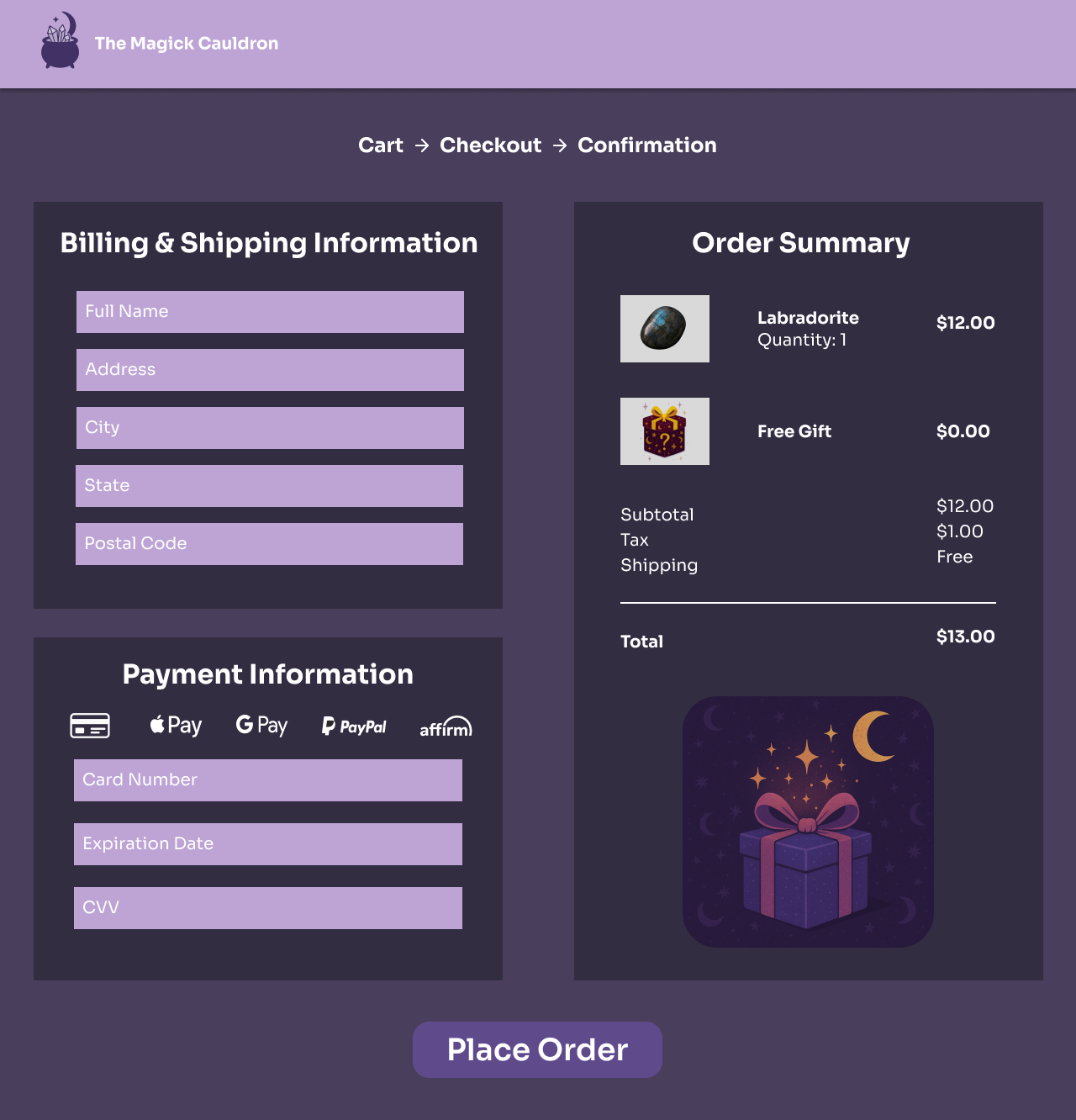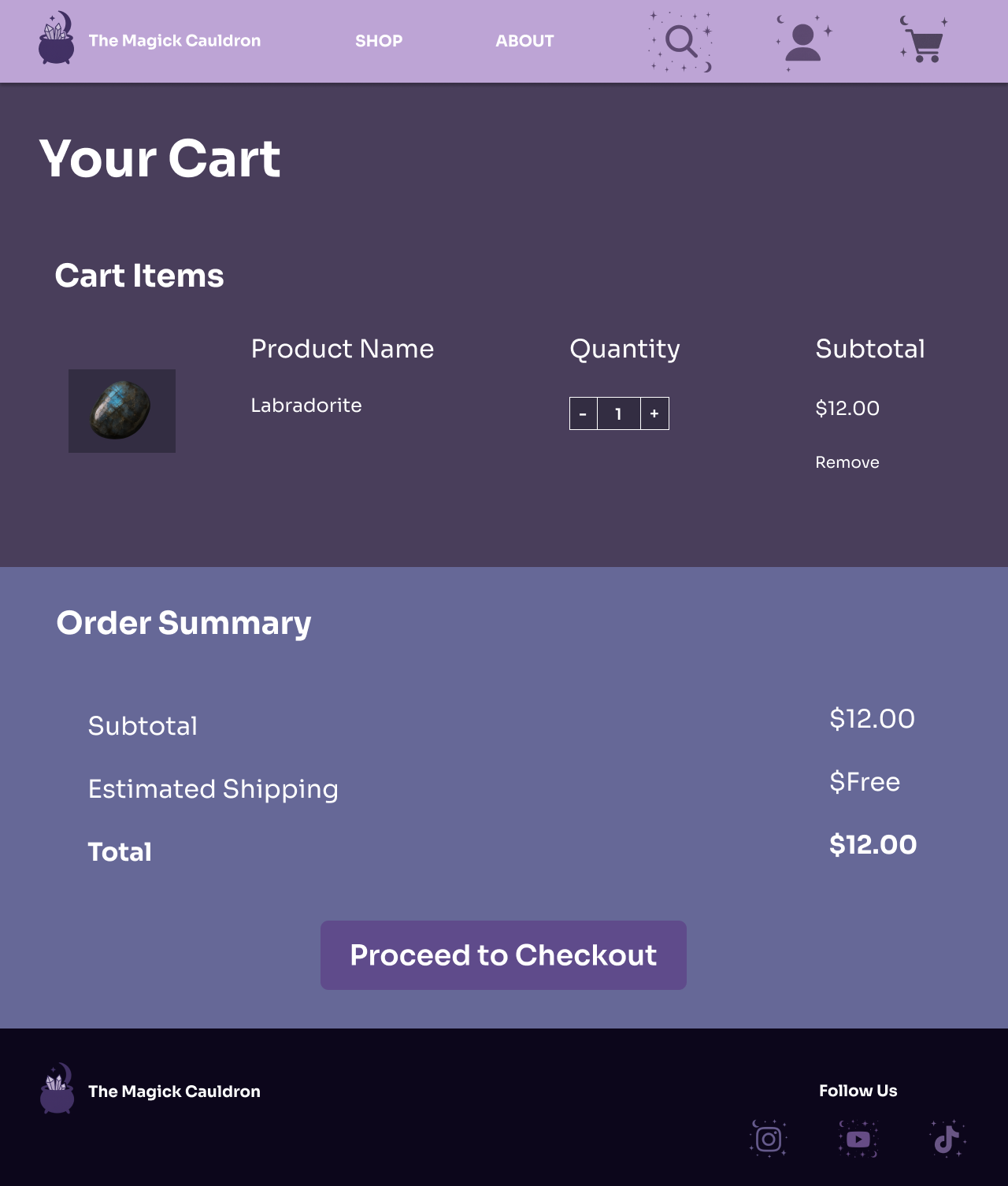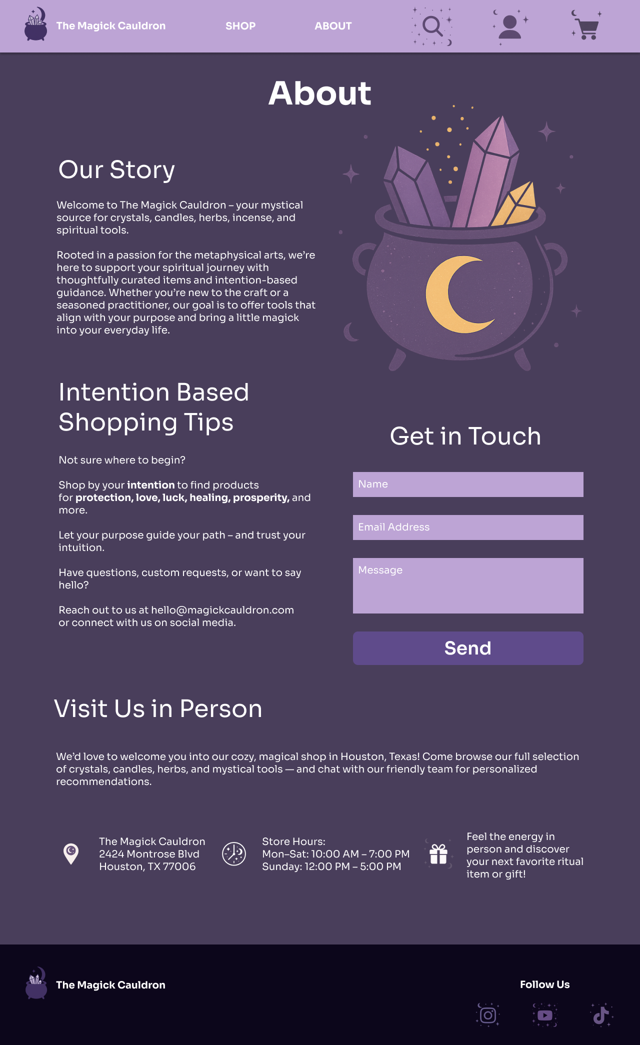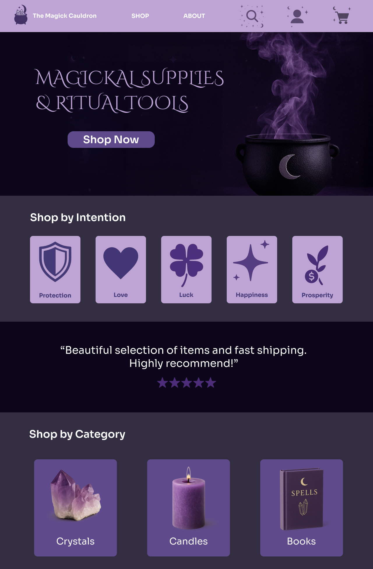 Outcome: The final design balanced clarity with The Magick Cauldron’s magical aesthetic, creating a more trustworthy and efficient shopping experience.